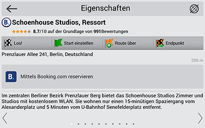 - Mithilfe der Karte oder der Option Nächste Zielorte in der Funktion Finden suchen Sie ein Hotel mit der Buchungsmöglichkeit mittels des Dienstes Booking.com.