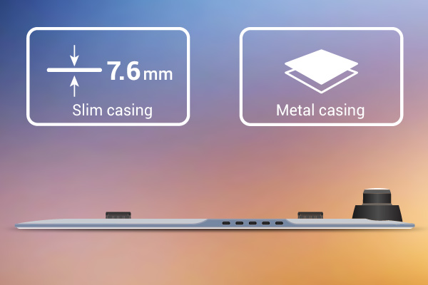 The stylish ultra-slim metal body of the NAVITEL MR155 NV DVR is only 7.6 mm thick. The device weighs 221 grams!