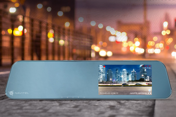 NAVITEL MR155 Night Vision is a smart rear-view mirror equipped with a DVR. The 4.4” TFT screen allows you to comfortably view the captured video, which is recorded at a Full HD resolution of 1920 × 1080 (30 frames per second). The dashcam has a viewing angle of 140 degrees.