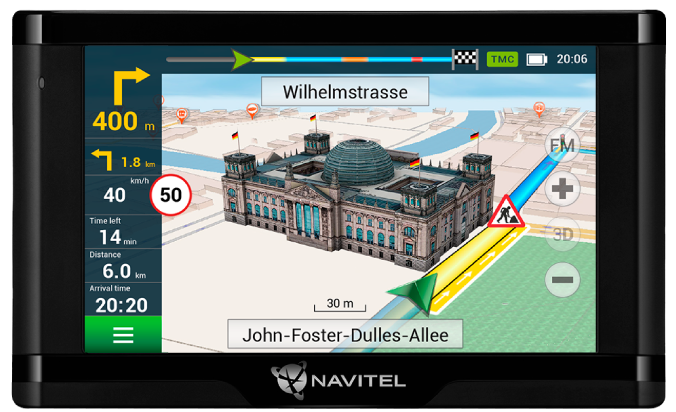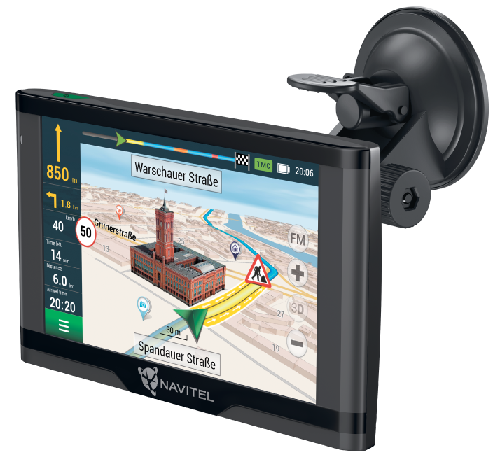 NAVITEL E500 MAGNETIC TMC is a car navigator with Traffic Messaging Channel technology (TMC). With this function, a car owner recieves real-time information about traffic jams and adverse conditions, allowing the calculation of an alternative route to make a detour around problem areas.