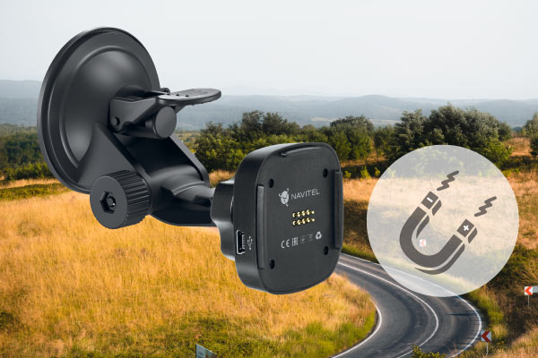 It is enough to bring the device and the base into proximity to securely fix the GPS. After that, it will automatically turn on and launch the navigation software. The strong magnet holds the device securely while driving. The GPS turns off automatically 15 seconds after its removal from the base. Installation and removal take only a few seconds.