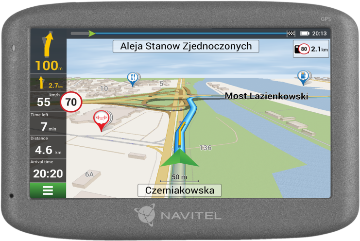 Thanks to Navitel Navigator software the GPS device will ensure a stable and glitch-free route building in any trip. NAVITEL E501 allows for downloading additional maps - the deivce has 8 GB of internal memory and a slot for microSD cards of up to 32 GB.