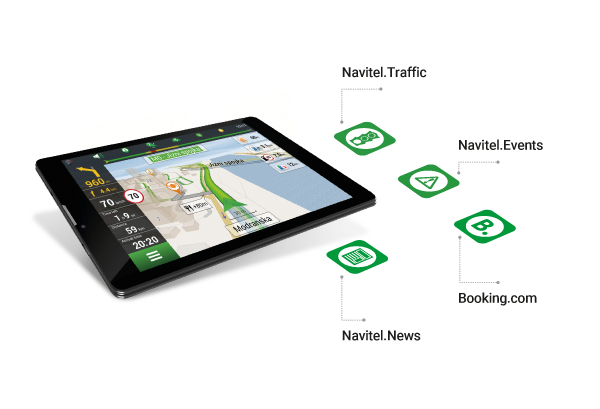 The NAVITEL T500 3G tablet is preloaded with maps of 47 countries. Maps contain up-to-date information about traffic intersections, urban infrastructure and video recording cameras.