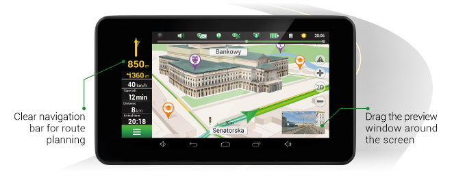 NAVITEL RE900 FULL HD es también un Navegador perfecto para la navegación fuera de línea con mapas preinstalados de 47 países europeos. Los mapas incluyen la última información sobre la red de carreteras y la base de datos SPEEDCAM actualizada, así como una gran cantidad de objetos POI (puntos de interes) y edificios 3D. El tráfico en tiempo real se tiene en cuenta al calcular el tiempo de ruta y se puede ver fácilmente en la pantalla en el modo de navegación.