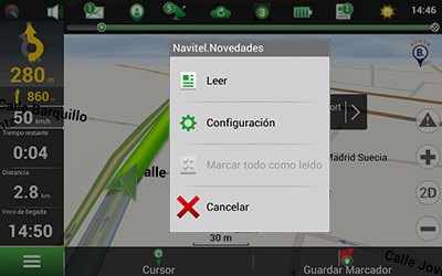 También puede poner el ícono de Navitel.Novedades en la barra de herramientas. Para hacerlo, vaya al Menú > Ajustes > Botones de mapas y permita la visualización del ícono Navitel.Novedades.