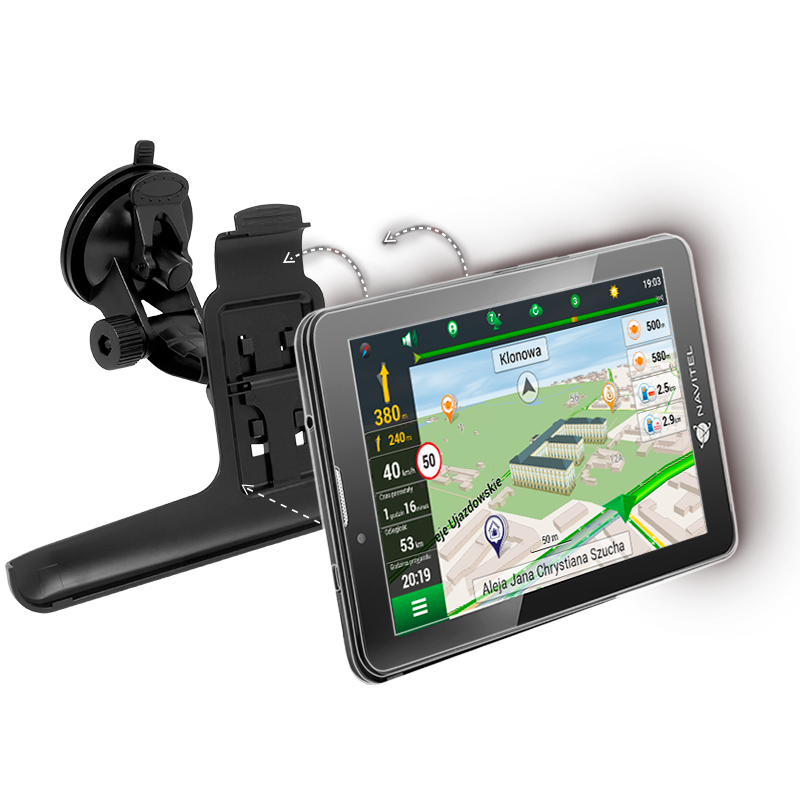 Uchwyt, który jest dołączony do tabletu pozwala na łatwy i szybki montaż urządzenia w samochodzie.
