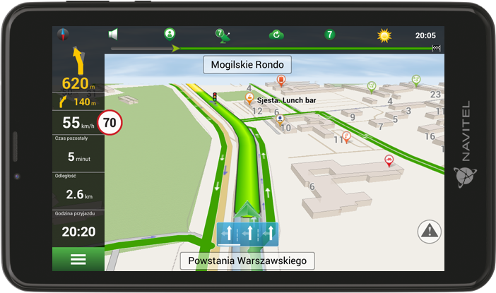 NAVITEL T757 LTE zawiera fabrycznie zainstalowane oprogramowanie Navitel Navigator. Znajdują się w nim zaawansowane funkcje nawigacyjne - ostrzeżenia przed fotoradarami, wybór trzech alternatywnych tras oraz wyszukiwarka punktów POI.