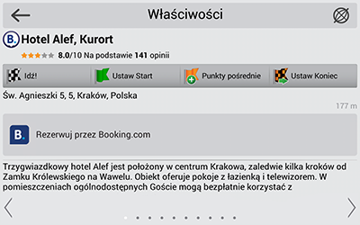 - Po wybraniu hotelu/zakwaterwania w zakładce Moja trasa naciśnij na okno z nazwą miejsca noclegowego.