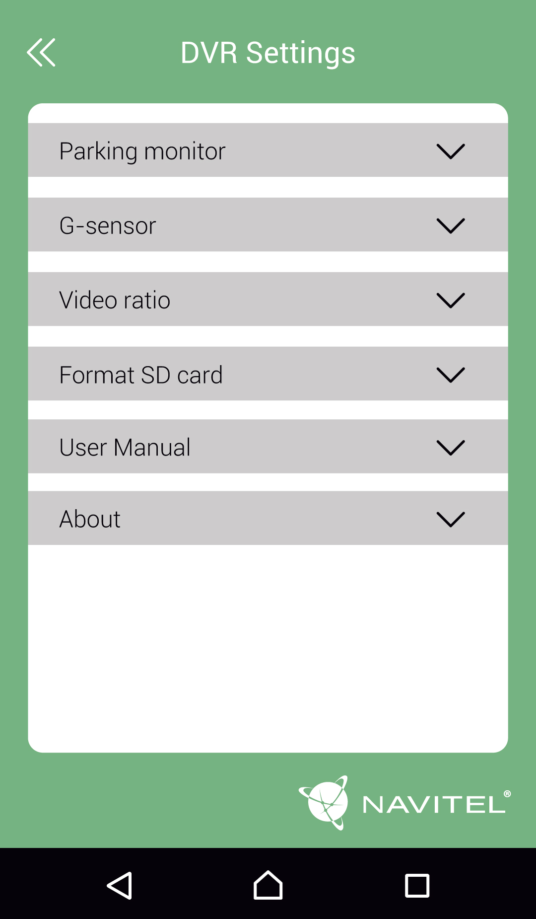DVR ayarlarını yöneten Navitel R1000 uygulaması doğrudan elinize geçecektir. Akıllı telefonunuzda veya tabletinizde NAVITEL R1000 çizgi kamerası ayarlarını değiştirin. Uygulama ayrıca DVR'nin hafıza kartını da formatlamanıza izin verir.