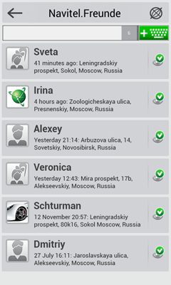 Navitel.Freunde ist ein interaktiver Dienst, der es Ihnen ermöglicht, die Position Ihrer Freunde auf der Karte zu sehen, mit Ihnen zu chatten oder eine Strecke so vorzuschlagen, dass Sie sich mit Ihnen treffen können.