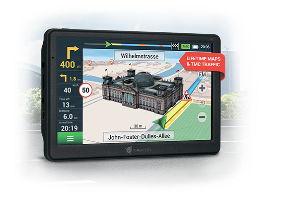 NAVITEL E700 TMC is delivered with pre-installed maps of 47 countries.