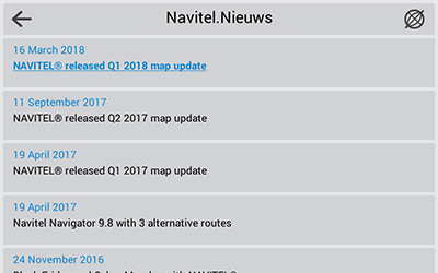 Met behulp van de Navitel.Nieuws-service bezorgen wij u belangrijk nieuws over updates en programma's en kondigen we speciale aanbiedingen en kortingen aan.