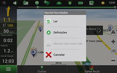 Para abrir a página deste serviço, selecione Menu > Meu Navitel > Novidades.