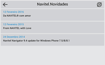 Mediante o serviço de Navitel.Novidades entregamos-lhe importantes novidades sobre as atualizações e o programa e informamos-lhe sobre ofertas especiais e descontos.